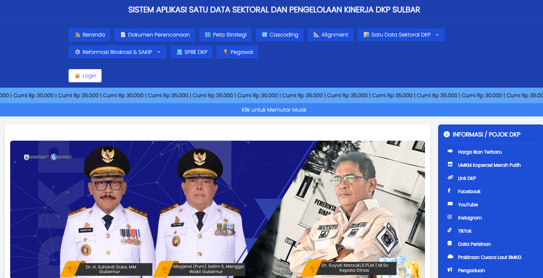 Website yang meneydiakan Data dan Informasi Sektoral Beserta Pengelolaan Kinerja Dinas Kelautan dan Perikanan Provinsi Sulawesi Barat